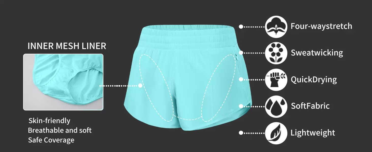 Lightweight Athletic Shorts for Women, Quick Dry Running Shorts with Zip Pocket and Liner Womens Gym Workout Shorts