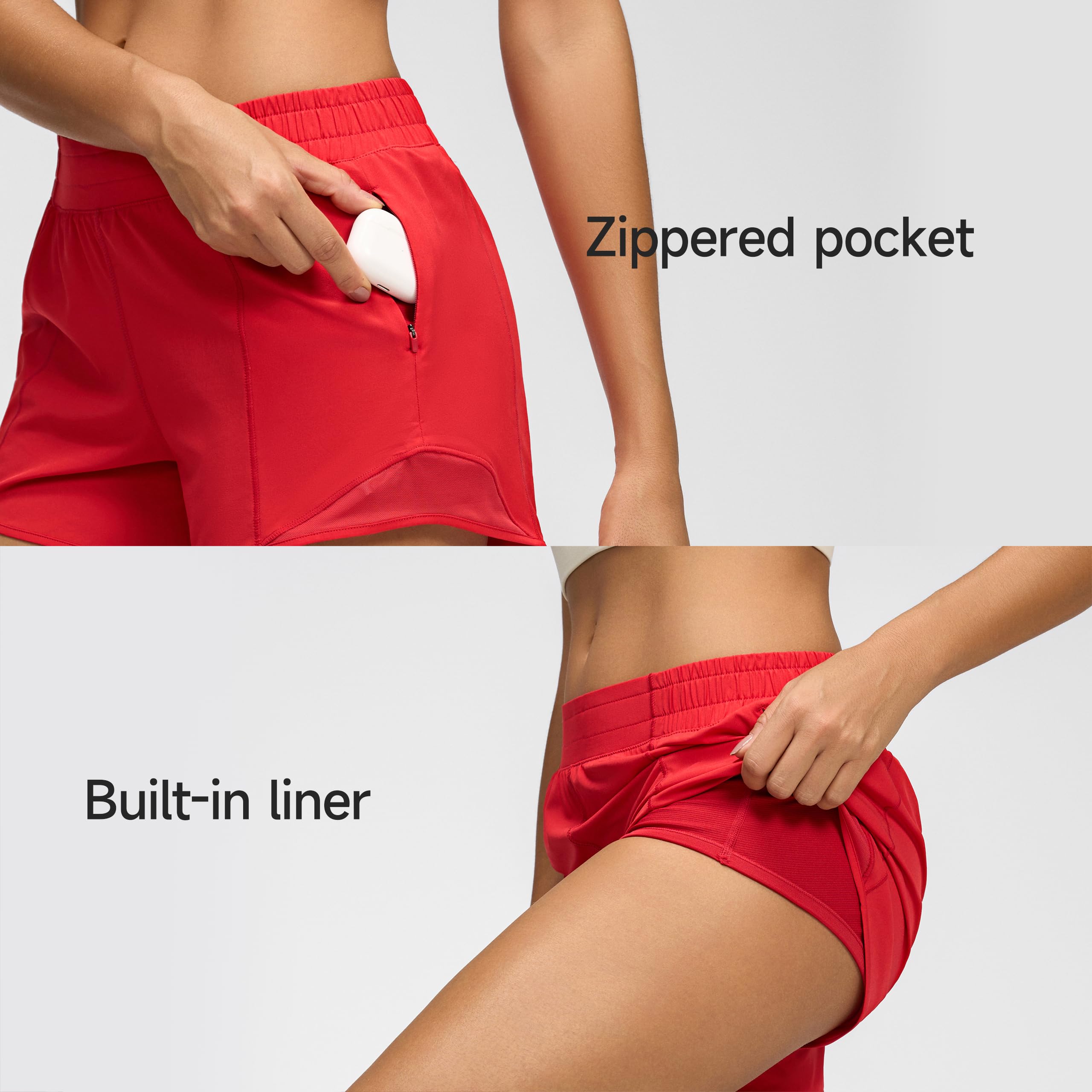 【Built-in Liner】:Womens athletic shorts built-in breathable mesh briefs provide safe coverage allowing you to exercise more safely and freely