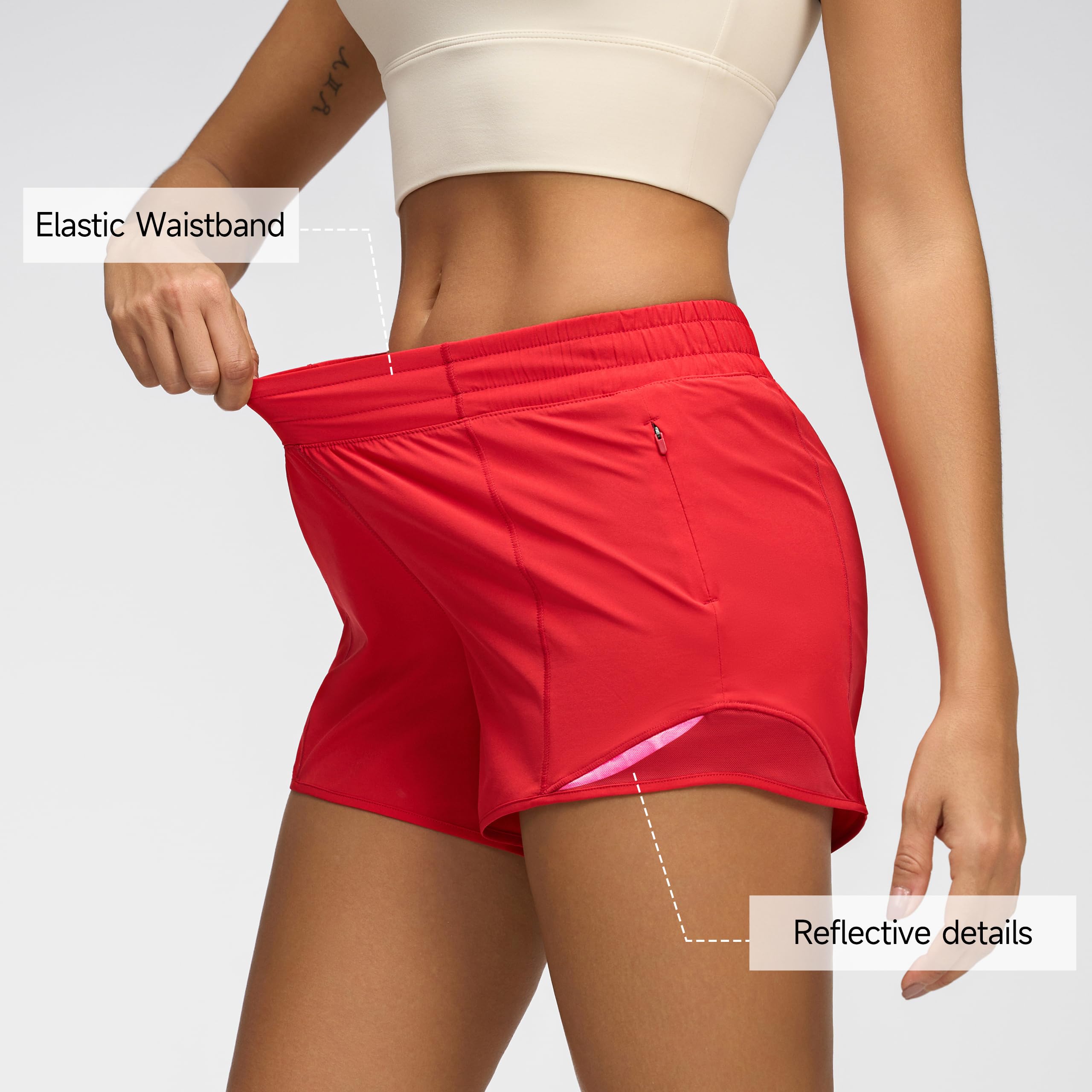Women’s Low Waisted Running Shorts 4″ with Mesh-Lined Active Workout Quick Dry Gym Athletic Sports Short Zip Pocket